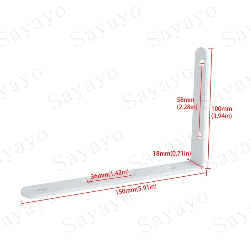 SAYAYO Angle Shelf Bracket, Stainless Steel, L Shaped, 90 Degree Right Angle Shelf Bracket with Screws for Desk, Table, Wooden Furniture, Pack of 8, 4 mm Thick Shelf Brackets, 150 x 100, EJ6207W-8P