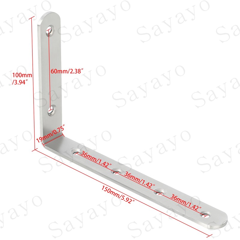 Sayayo Shelf Bracket Corner Brace Angle Bracket Shelf Support Wall Hanging 150mm*100mm, Stainless Steel Brushed Finished, 4 Pcs, EJ6207-4P
