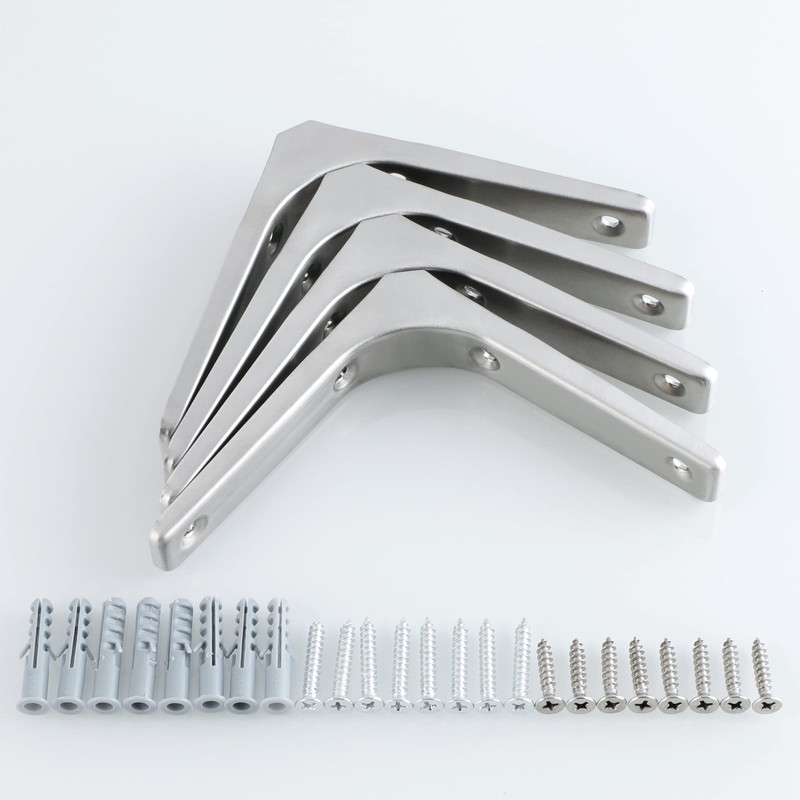 Sayayo Stainless Steel Shelf Brackets Wall Brackets for Shelves Shelf Support Angle Bracket 100mm x 100mm Heavy Duty L Brackets Brushed Nickel, 4 Pcs, EJR100LS-4P
