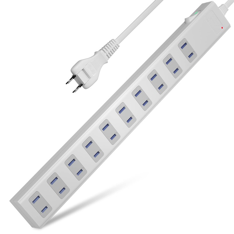 - Eliminates lack of outlets at once: Large capacity with 10 AC ports. All ports can be used simultaneously, so it is useful in places where power is not sufficient. 180° swing plug for wiring from back of furniture Great for rooms with little wall outlets, around televisions with high electronics, offices and conference rooms where you want to share one power source with multiple devices