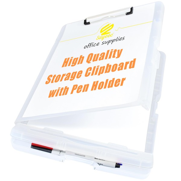SAYEEC Clear Clipboard with Storage, High Capacity Nursing Clipboard with Pen Holder and Low Profile Clip, Heavy Duty Side Opening Plastic Storage Clipboard Folder Case for Teacher Lawer Work Office