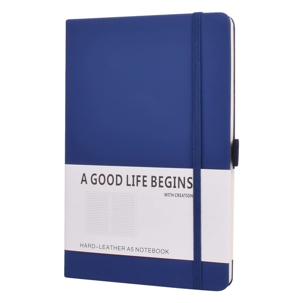 SAYEEC Lined Journal Notebook 1 Pack, A5 Hardcover Notebook for Work with Pockets, 200 Pages Thick Paper, Medium 14 cm × 21 cm (Blue)