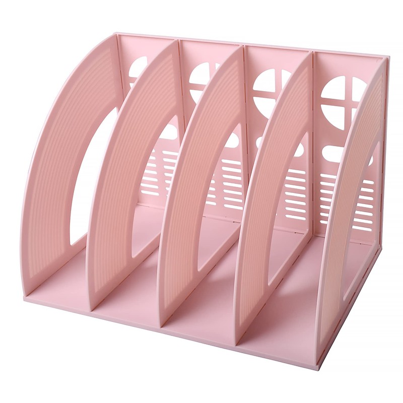 SAYEEC Magazine File Holder Folder Storage Desktop 4 Compartment Standing Hollow Pink File Bookshelf Organizer Box Office Racks Displays Holds Notebooks Documents for School/Working/Students