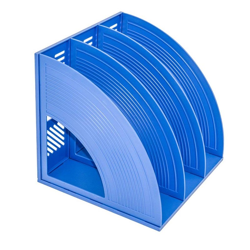 - THREE COMPARTMENT FILE HOLDER SIZE: 10 in*9.33 in*9.33 in/25.4cm*23.6cm*23.6cm(L*W*H), lightweight, easy to carry, the perfect size make this bookshelf perfect for office organization, study, working, any desk, table, home, kitchen, living room etc.
