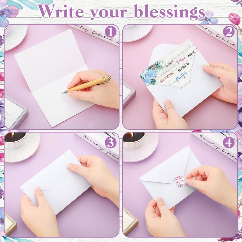 - Suitable Dimensions: unfolded, the inspirational greeting cards blank inside measure approximately 5.9 x 7.9 inches/ 15 x 20 cm, while the white envelopes measure about 6 x 4 inches/ 15.5 x 10.5 cm; The round stickers, meanwhile, have a diameter of about 1.2 inches/ 3 cm; The generous dimensions ensure there is plenty of space for customer's handwritten message and thoughts.