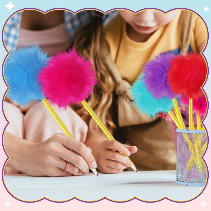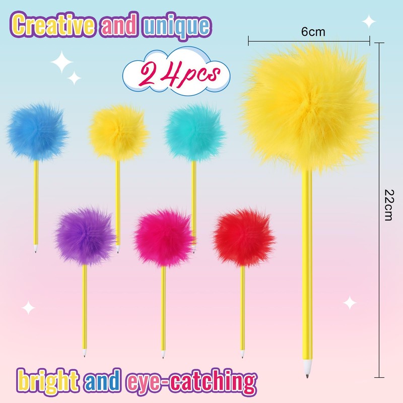 - Large Quantity for Diverse Needs: you will receive 24 cute fluffy pens, a total of 6 different colors, rose red, sky blue, purple, yellow, green, red, 4 of each color, each with stylish fluffy pompom balls; The quantity is enough to meet your daily use and gift needs