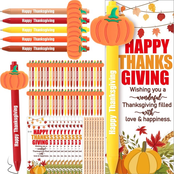 - Thanksgiving Theme Design: get into the holiday season with these fun, clever designs; Each Thanksgiving pen is adorned with an adorable pumpkin, while the greeting cards feature Thanksgiving blessings on the front; These Thanksgiving pens will liven up any Thanksgiving party and make a wonderful, thematic gift that adds joy and warmth to your celebration
