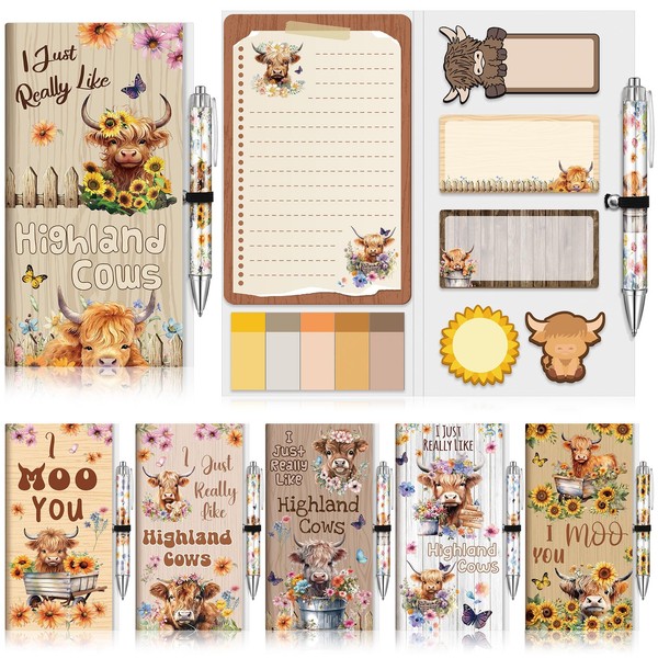 - Highland Cow Note Pads Set: you will get 6 pack highland cow sticky notes with pen set includes 6 memo pads and 6 matching pens, the cute writing memo pads set featuring 6 fun highland cow theme design, ideal as a thoughtful gift for teachers; The portable size allows for easy carrying, fitting perfectly into bags, making it ideal for kids and teachers alike as a portable organizational tool