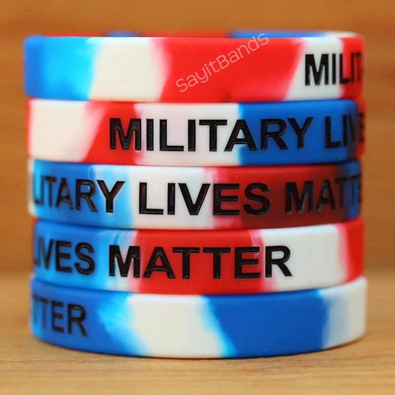 SayitBands 5 Military Lives Matter Debossed Color Filled Wristbands Red White and Blue