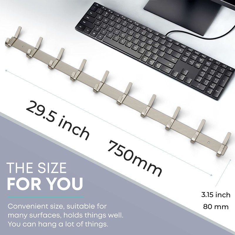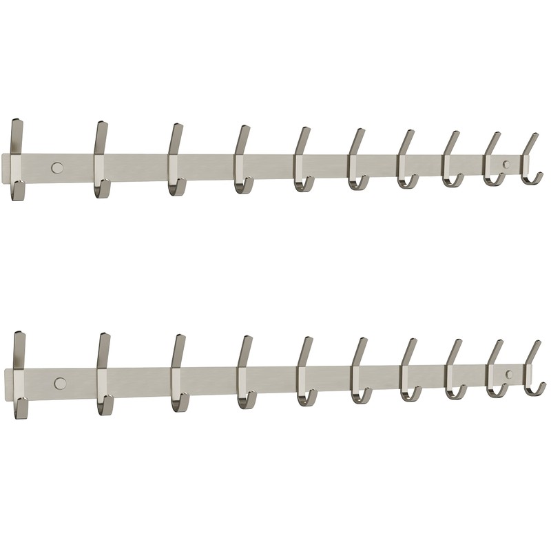 SAYONEYES Brushed Nickel Coat Rack Wall Mount with 10 Double Hooks for Hanging – 30 Inch Heavy Duty SUS304 Stainless Steel Rustic Coat Hooks – Clothes, Purse, Towel Wall Hooks – 2 Pack