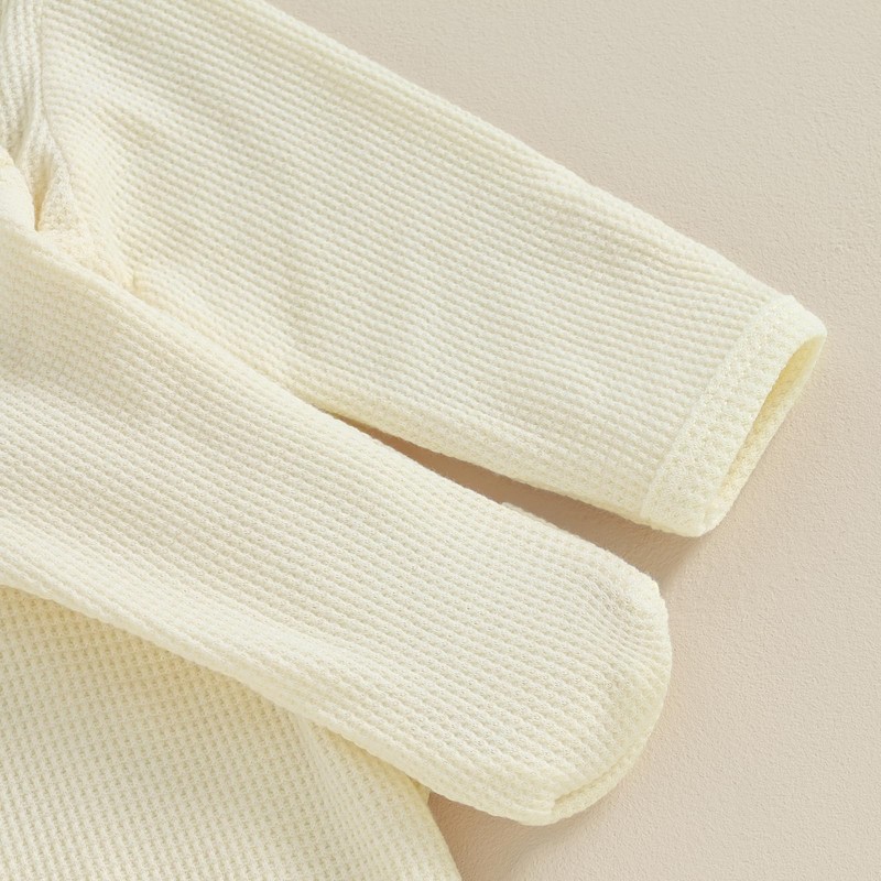 - DESIGN: Newborn Baby Girl Fall Winter Clothes,Waffle Ruffle Footies Romper with Headband,Newborn Baby Girl Hospital Coming Home Outfit.Waffle knit style,round neck,long sleeve,ruffles front design, the front oblique zipper closures for easy dress on/off
