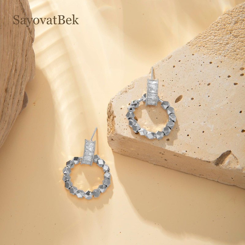SayovatBek Silver Plated Drop Dangle Earrings, Cubic Zirconia Geometric Design, Lightweight, Hypoallergenic, Elegant Jewelry for Women