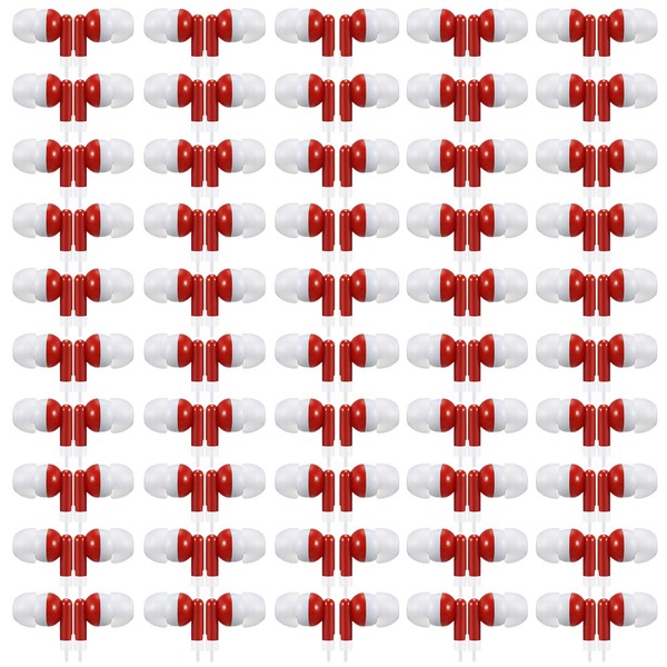 Saysurey 50 Pack Earbud Bulk Headphone Earphone Earbud with Wire Individually Bagged Wired in Ear Buds(Red)