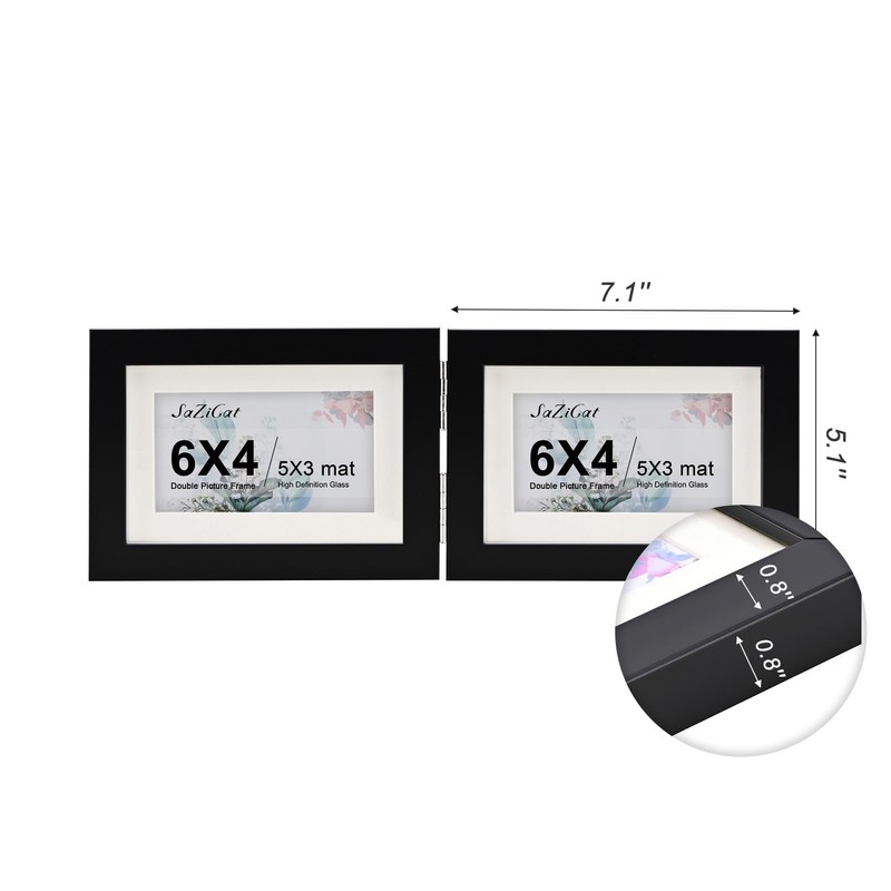 SaZiCat Double Hinged 4X6 Picture Frame with Real Glass-Tabletop or Wall Mounted, Display for 3X5 & 4X6 Photos (with/without Mat)-Classic Black, For Family Photos & Wedding Memories-H64X2
