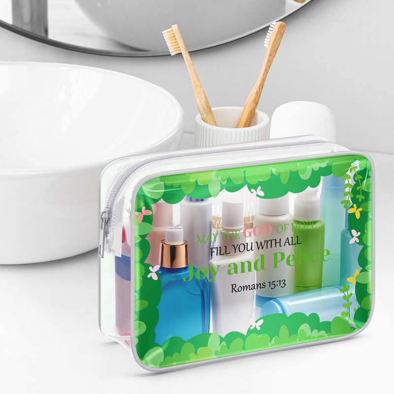 Sazuwu Christian Gifts for Women Birthday Romans 15 13 Clear Makeup Bag Cosmetic Organizer Inspirational Gifts for Women Friends Religious Baptism Gifts for Adults Faith Gifts for Her