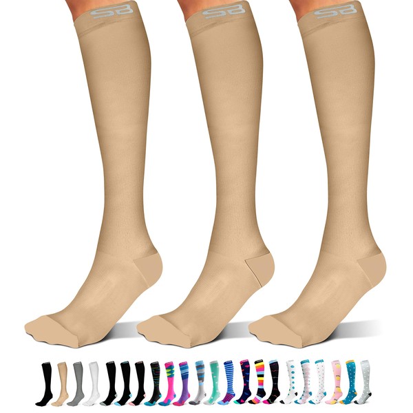 SB SOX 3-Pair Compression Socks (15-20mmHg) for Men & Women – Best Socks for All Day Wear! (L/XL, 02 – Solid Nude)