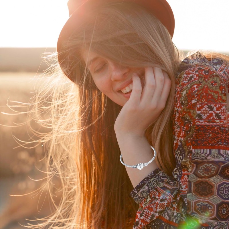 - Letter cuff bracelet for women with heart Pendant is a great women jewelry gift bracelet for women, men, family, mom, dad, sister, brother, daughter, granddaughter, grandgrandpa, grandma, father, mother with boho-style, multi-layered wrap, stackable wristlets.