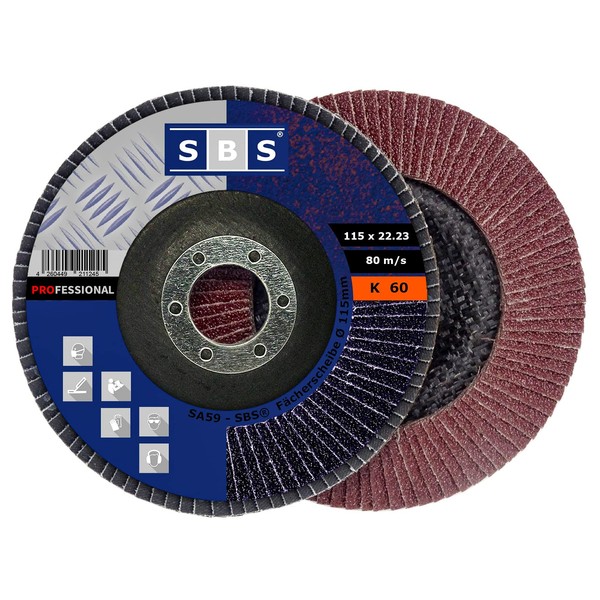 - SBS flap discs, diameter 115 mm, grain 60, brown for angle grinders with sanding mob disc, pack of 10
