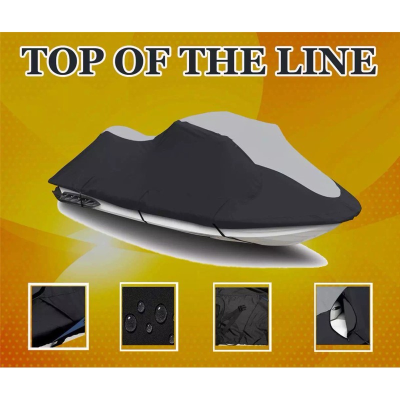 GREAT QUALITY - JET SKI COVER Our Jet Ski Cover will provide all year round outdoor and indoor protection for your investment. Designed for both: Storage and Trailering Purposes -MADE FROM 600 DENIER WOVEN POLYESTER. MADE TO LAST !!! -UPGRADED,SOLUTION DYED POLYESTER MATERIAL, UPGRADED STITCHING, TRAILERING SYSTEM IS DETACHABLE IF COVER TO BE USED FOR STORAGE PURPOSES, UPGRADED HEAVIER BUCKLES, UPGRADED STRAPS, UPGRADED ZIPPERS, SUPERIOR BREATHBILITY. THIS IS TRULY TOP OF THE LINE COVER. PACKAGE INCLUDES: Features of Personal Watercraft Cover: