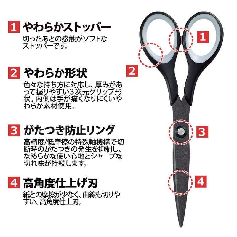 - Slim size scissors (stationery) that fit neatly into a pen case or pen stand. Fluorine coated with tape and no sticky residue. The inside of the grip is soft material that will not hurt your hands. Uses high carbon stainless steel with excellent sharpness and durability. Anti-rattle ring prevents rattling and ensures a smooth feel. *The rattling when opening the scissors is required to cut due to the structure of the scissors. The anti-rattling ring is a mechanism that reduces rattling when cut. Comes with a cap for easy storage and transportation