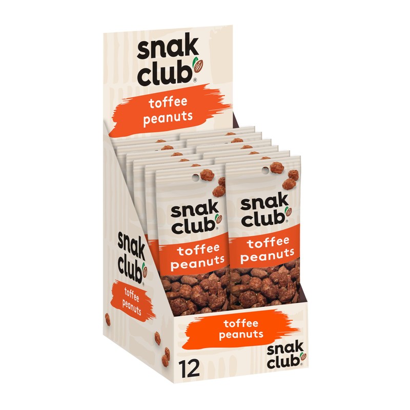 Snak Club Toffee Peanuts, Candied Peanuts with Praline Coat and Sweet Cream, Gluten-Free and Kosher Snack, 2 oz Bags, 12 Pack
