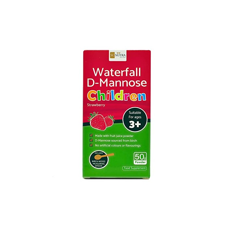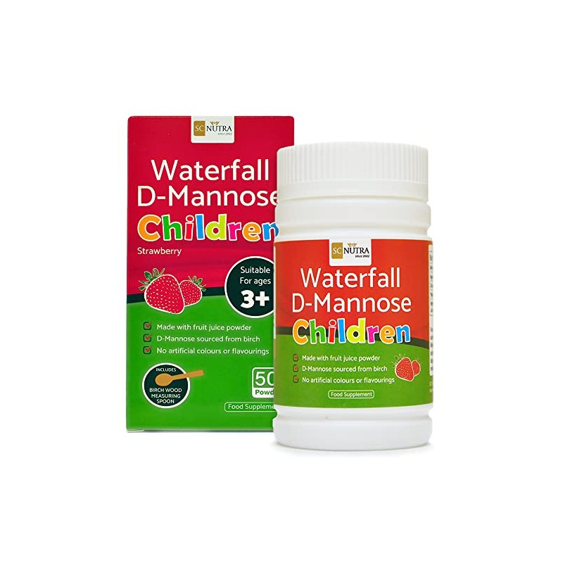 - Waterfall D-Mannose Children Strawberry can be enjoyed straight off the spoon for a familiar natural juice flavour children love! For a gentler flavour, mix with water or juice. Powder offers a great alternative to tablets for younger children, with the powder instantly dissolving on the tongue and not needing to be sucked or chewed before being swallowed. Also available in Apple & Blackcurrant flavour.