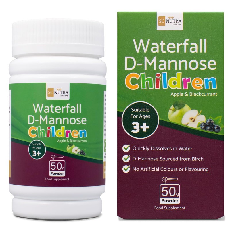 - Waterfall D-Mannose Children Apple & Blackcurrant can be enjoyed straight off the spoon for a familiar natural juice flavour children love! For a gentler flavour, mix with water or juice. Powder offers a great alternative to tablets for younger children, with the powder instantly dissolving on the tongue and not needing to be sucked or chewed before being swallowed. Also available in strawberry flavour.