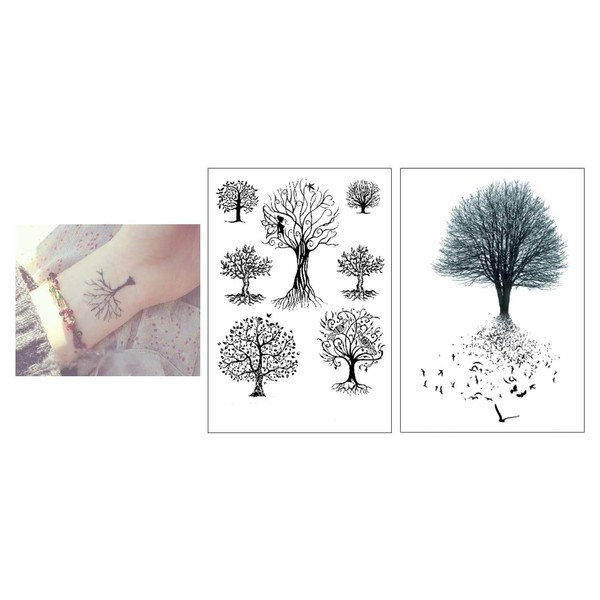 SC887 972 Temporary Tree Tattoo Fake Tree Tattoo Bird Tattoo 2 Sheets