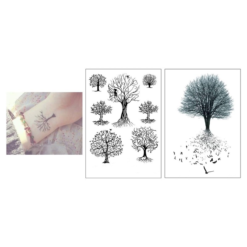 2 sheets of tree tattoo, sheet size approx. 15 x 11 cm. Latest trend! The tattoos last around 4-6 days and can be easily removed. Simply cut the tattoo to size, press on the desired skin area and press on the skin with a little water for 30-60 seconds. Done!