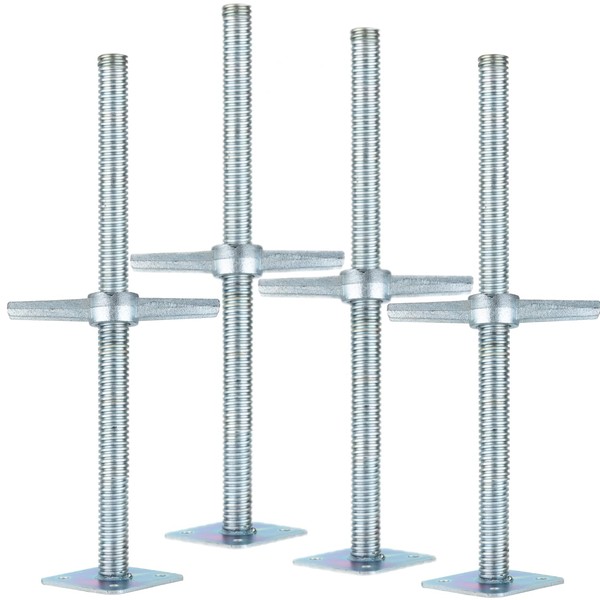 - 4 New 1 3/8" Scaffolding 24" Adjustable Leveling Galvanized Screw Jack with Base Plate: This package includes four brand new 1 3/8" scaffolding adjustable leveling screw jacks with base plates, providing a versatile and sturdy support system for your construction or renovation projects.