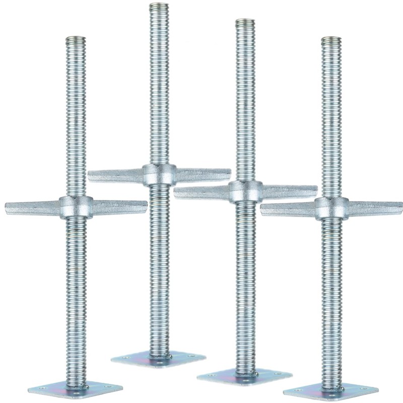 Scaffold 24" Adjustable Leveling Galvanized Screw Jack with Base Plate, 4 Pack