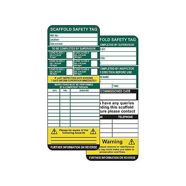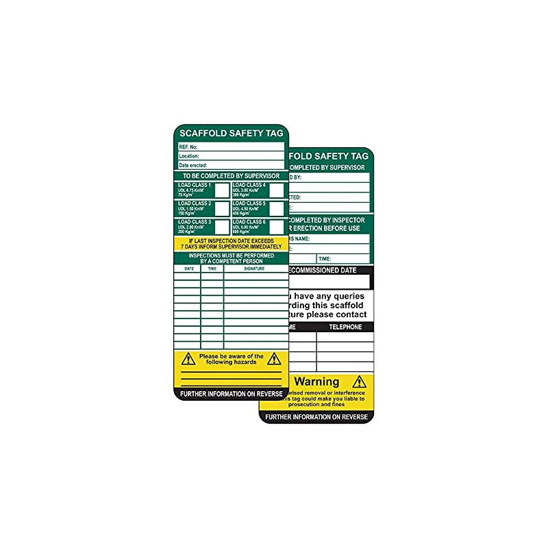 Scaffold Inspection Safety Tag Insert, Polypropylene, W75mm x H180mm, Pack of 50