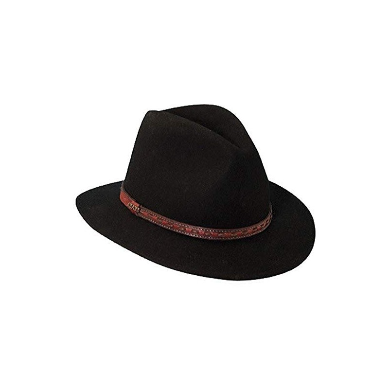 Black color woolfelt safari style hat with narrower 2 1/2" brim to compliment either jeans or khakis. Naturally water repellent and packable for travel and adventure! Leather style hatband. Looks great in the city or the backcountry