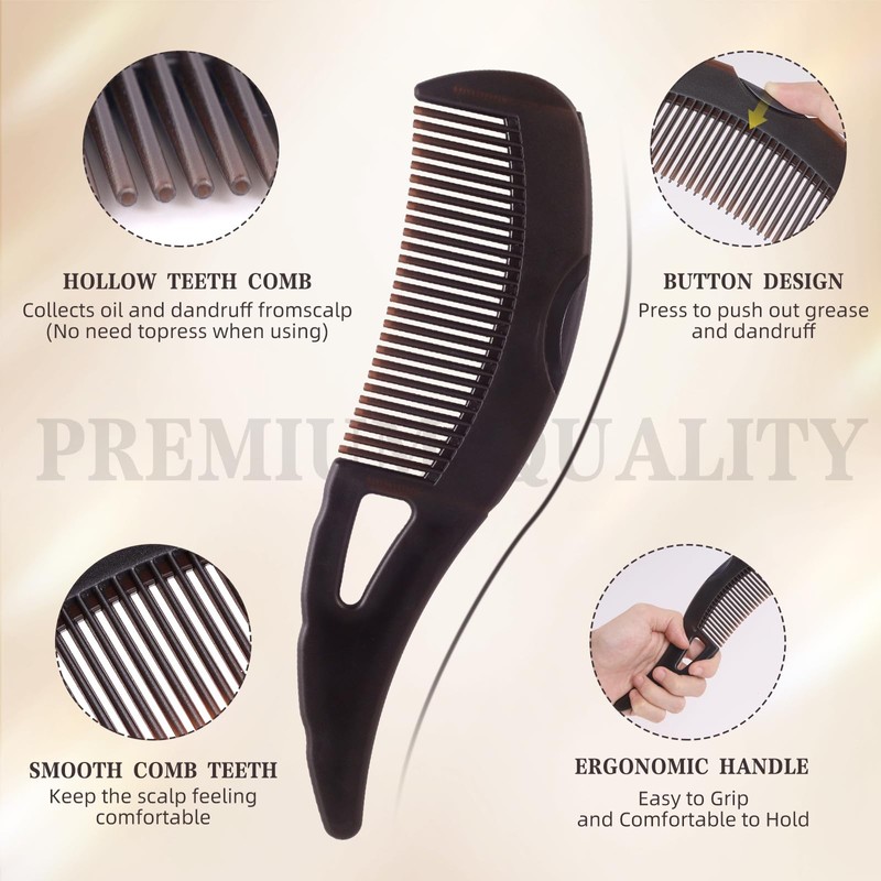 - Hollow comb teeth design: our dandruff comb with innovative hollow tooth design gently removes dirt, dandruff and oil from hair and scalp. Ideal for long hair and less frequent washing.