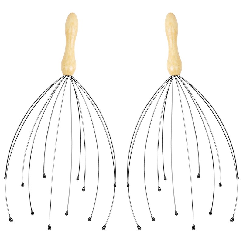 The scalp massager is composed of steel wire with smooth rubber beads and wooden handle, which is comfortable to use and easy to clean
