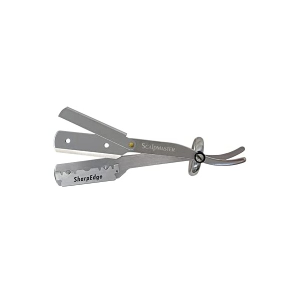 La maquinilla de afeitar de peluquería 100% acero inoxidable proporciona un afeitado suave y cerrado. Cuenta con un reposamanos y un anillo giratorio para un mayor control durante el uso. Incluye una hoja reemplazable. 12,7 cm de Las cuchillas adicionales se venden por separado.