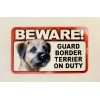 SCANDICAL BEWARE GUARD BORDER TERRIER DOG ON DUTY 5" X 8" HANGABLE PLASTIC SI...