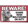SCANDICAL BEWARE GUARD IRISH WOLFHOUND DOG ON DUTY 5" X 8" HANGABLE PLASTIC SIGN NEW