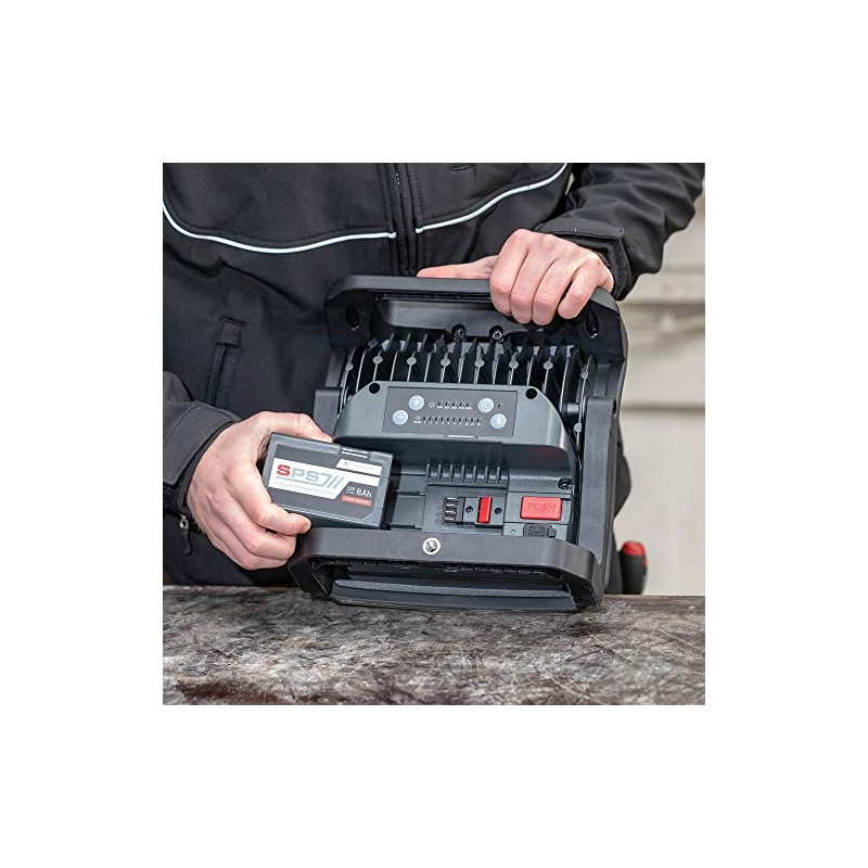 - An innovative power supply system developed by SCANGRIP - Easily you can insert a new, fully charged battery and continue the work while another battery is charging. Or you can simply add the charger directly to the lamp to get power supply.