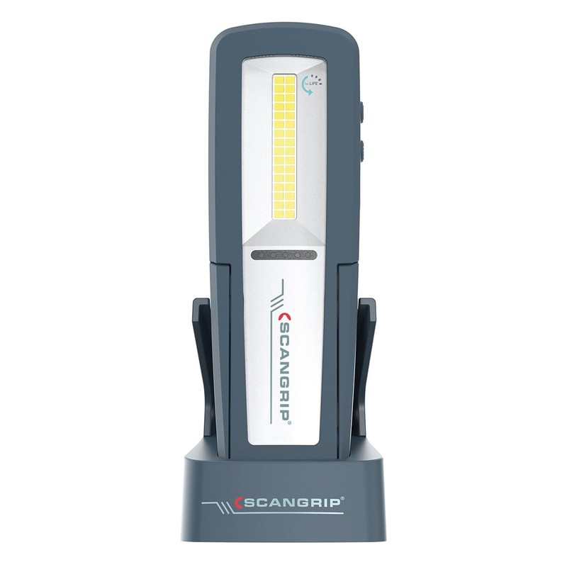 The Scangrip Uniform is powered by 32 efficient multi-LEDs and provides a powerful, adjustable light output of up to 500 lumens. Die handliche Leuchte an der Oberseite sorgt fr einen linearen Lichtstrahl von 175 Lumen. Ideal for carrying out inspections. In addition, a battery indicator informs the user about the remaining battery level.