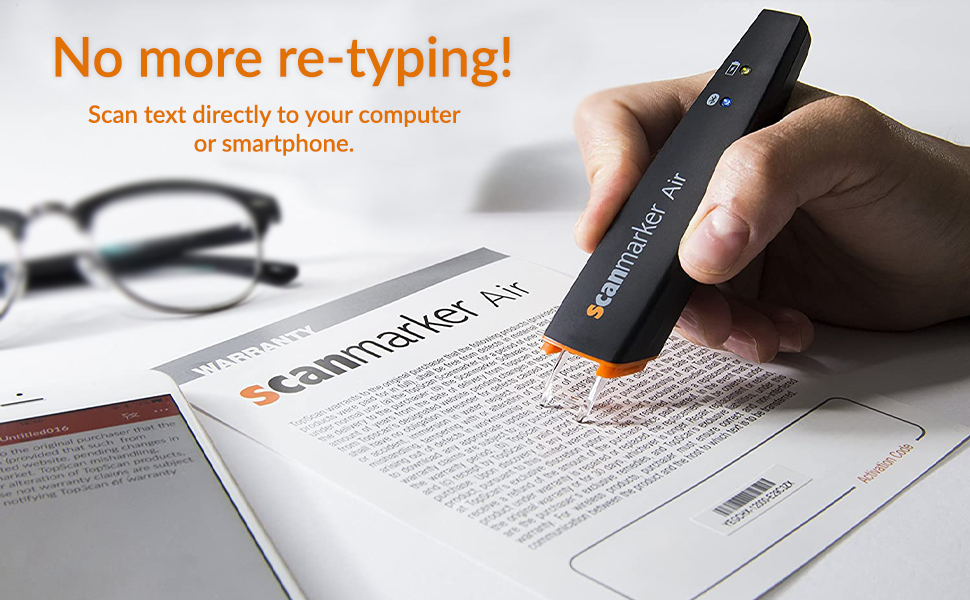Ideal for students and professionals. With Scanmarker Air you can skip the summarizing and typing process of the key sentences you've noted while reading books & documents. It retypes text 20 times faster than regular typing, numbers and symbols instantly appear in the computer application of your choice or our customized mobile apps without requiring any additional steps.