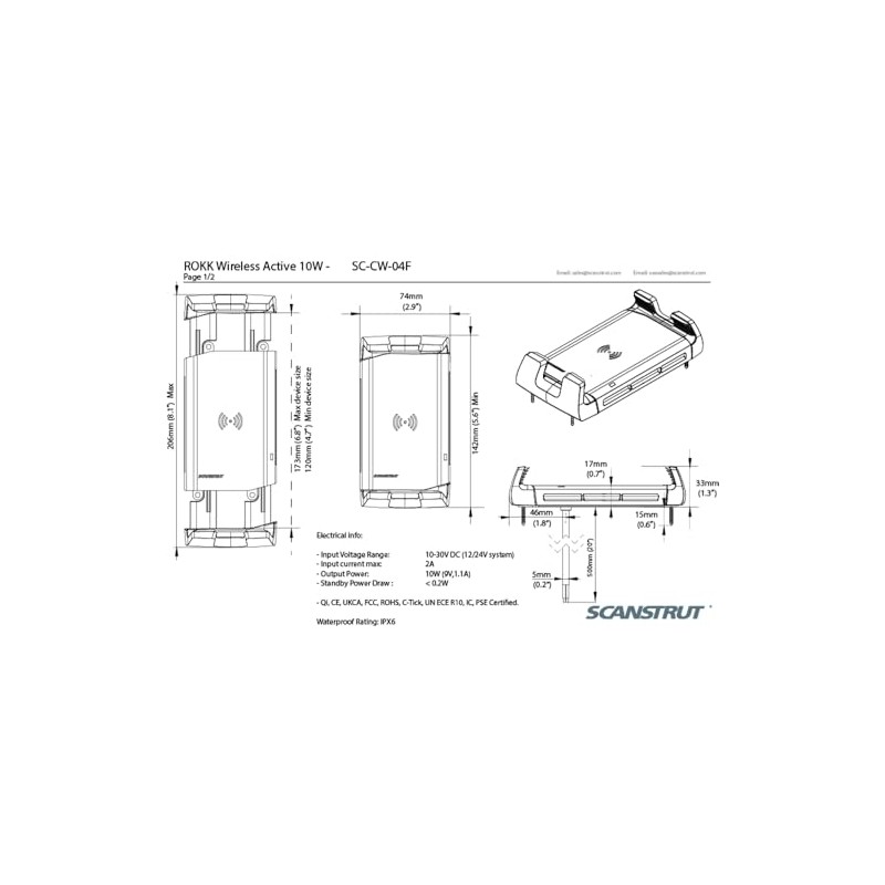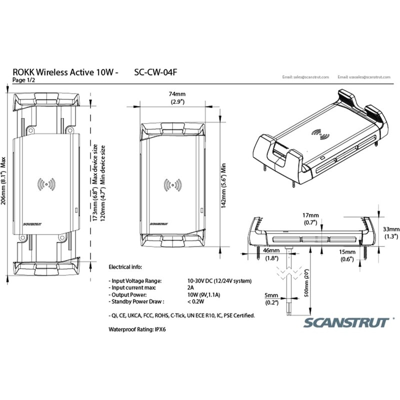 Scanstrut ROKK Wireless - Active. 10W Waterproof Wireless Phone Charging Mount 12/24V