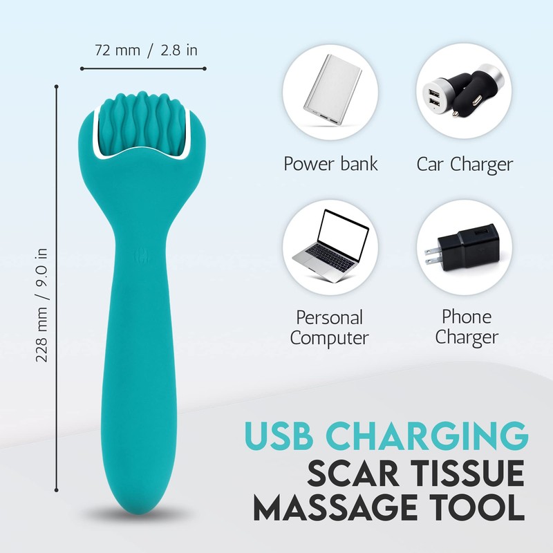 - Gentle & Convenient - Designed with a silicone-covered water-resistant surface, our textured roller is gentle enough for post-surgery incisions. This scar tissue tool is ergonomically designed to reach any body part for single-handed use.