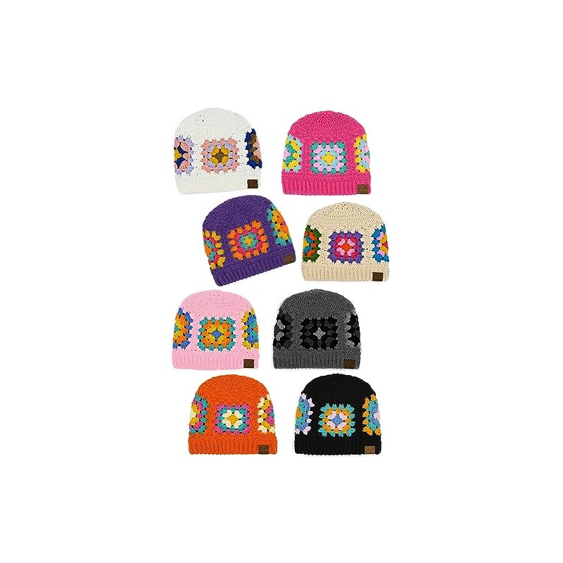 ScarvesMe Women Winter Soft Multicolor Geometric Pattern Crochet Beanie Hat