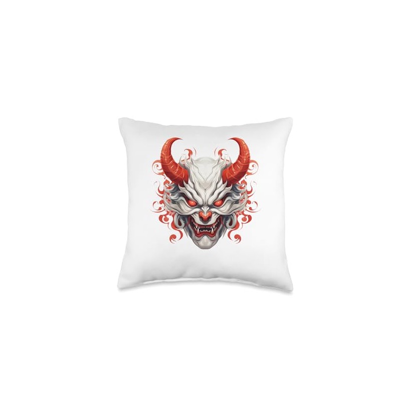 Scary Yokai Oni Mask Japanese Anime Warrior Throw Pillow