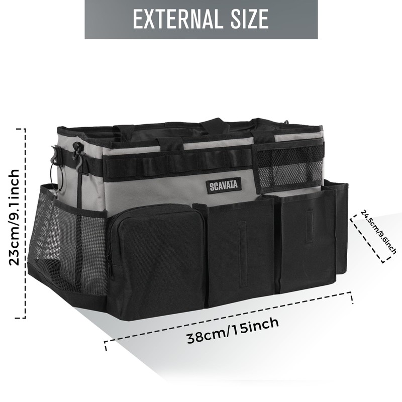 SCAVATA Wearable Cleaning Caddy Bag, Cleaning Caddy Supplies Organizer with Handle & Shoulder Straps for Housekeepers, Under Sink & Car Cleaning Tool Organizers with 4 Foldable Divider (Grey)