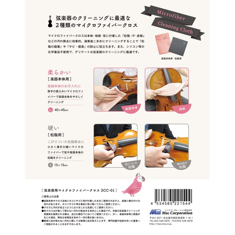 SCC-01 Pink (PNK) Cloth for Stringed Instruments & Pine Cloth Set of 2