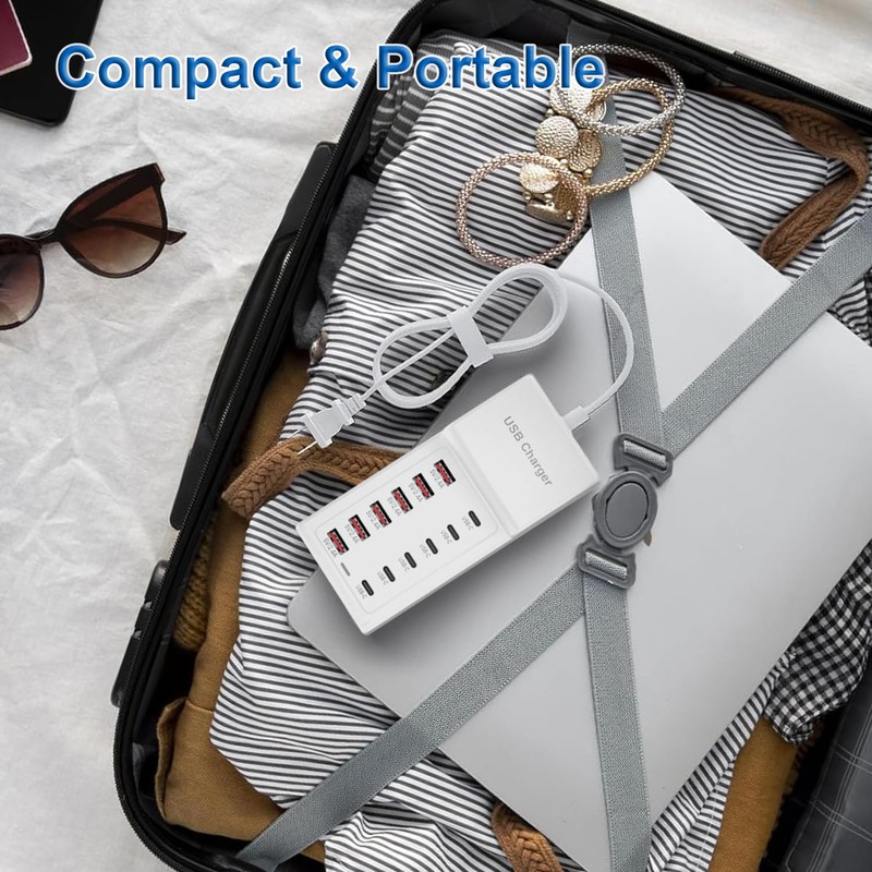 • Compact and portable USB chargerUSB charging power strip integrates USB C and USB A. The size is 13.5*6*3cm, weighs only 150geasy to carry. Equipped with 1.4M detachable power cord, it is flexible for home, office and desktop use. It saves space and time when charging devices.