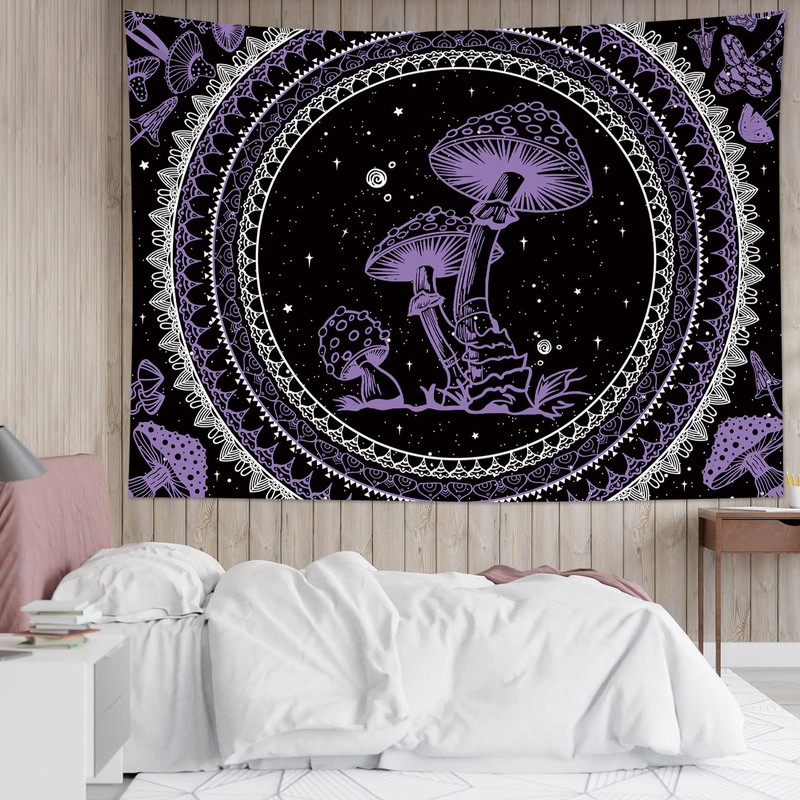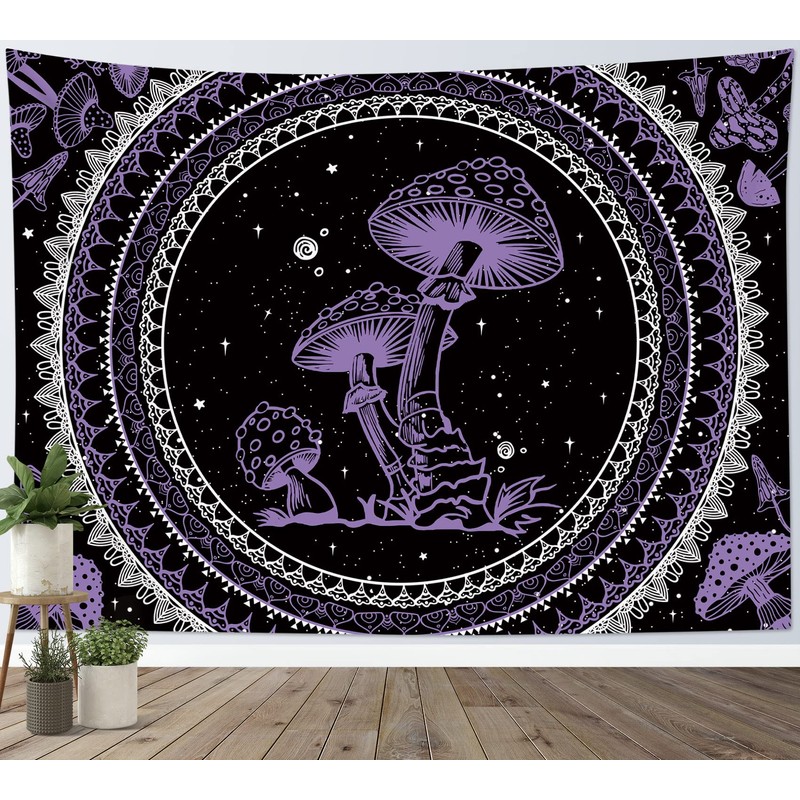 SCECALA Purple Mushroom Tapestry Boho Mandala Pattern with Purple Mushroom Wall Tapestry Black and White Star Wall Hanging for Bedroom Living Room Teen Dorm Party Home Decor 60x40 Inch