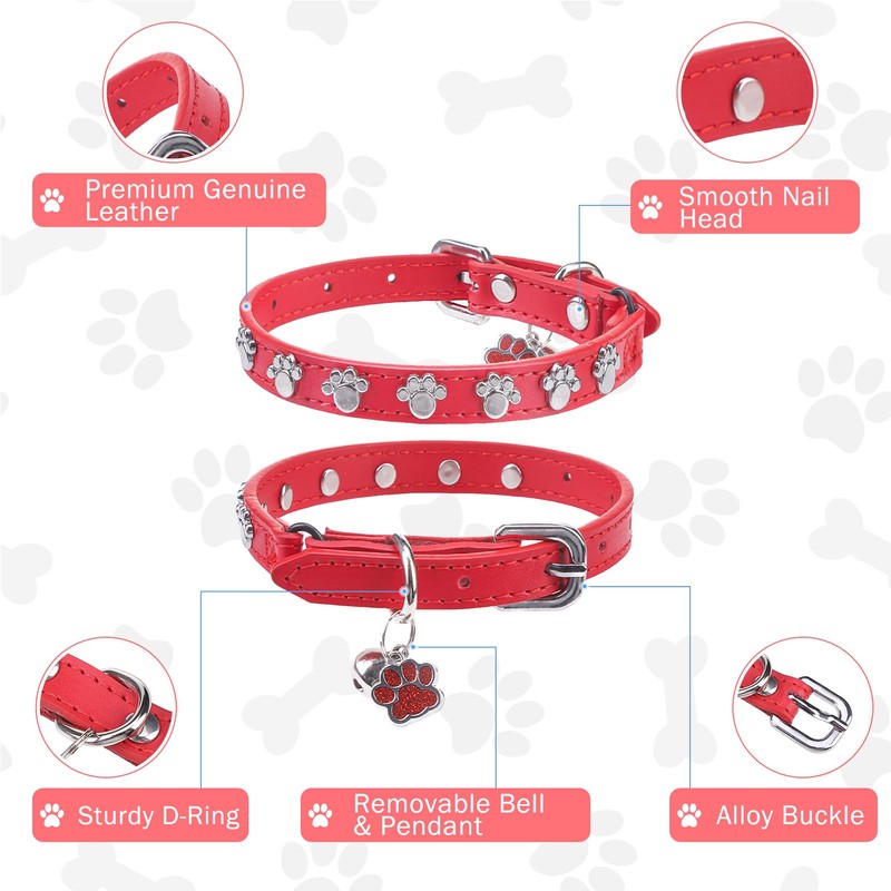 - CAT COLLARS FOR MULTIPLE OCCASIONS: Exquisitely crafted cat collars are good-looking and textured, perfect for gift-giving. The footprint shape charm and bell can be easily detached as needed. Suitable for parties, festivals, daily wear, weddings, photo shoots and travels, make your cat or dog more eye-catching.